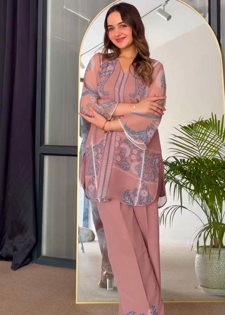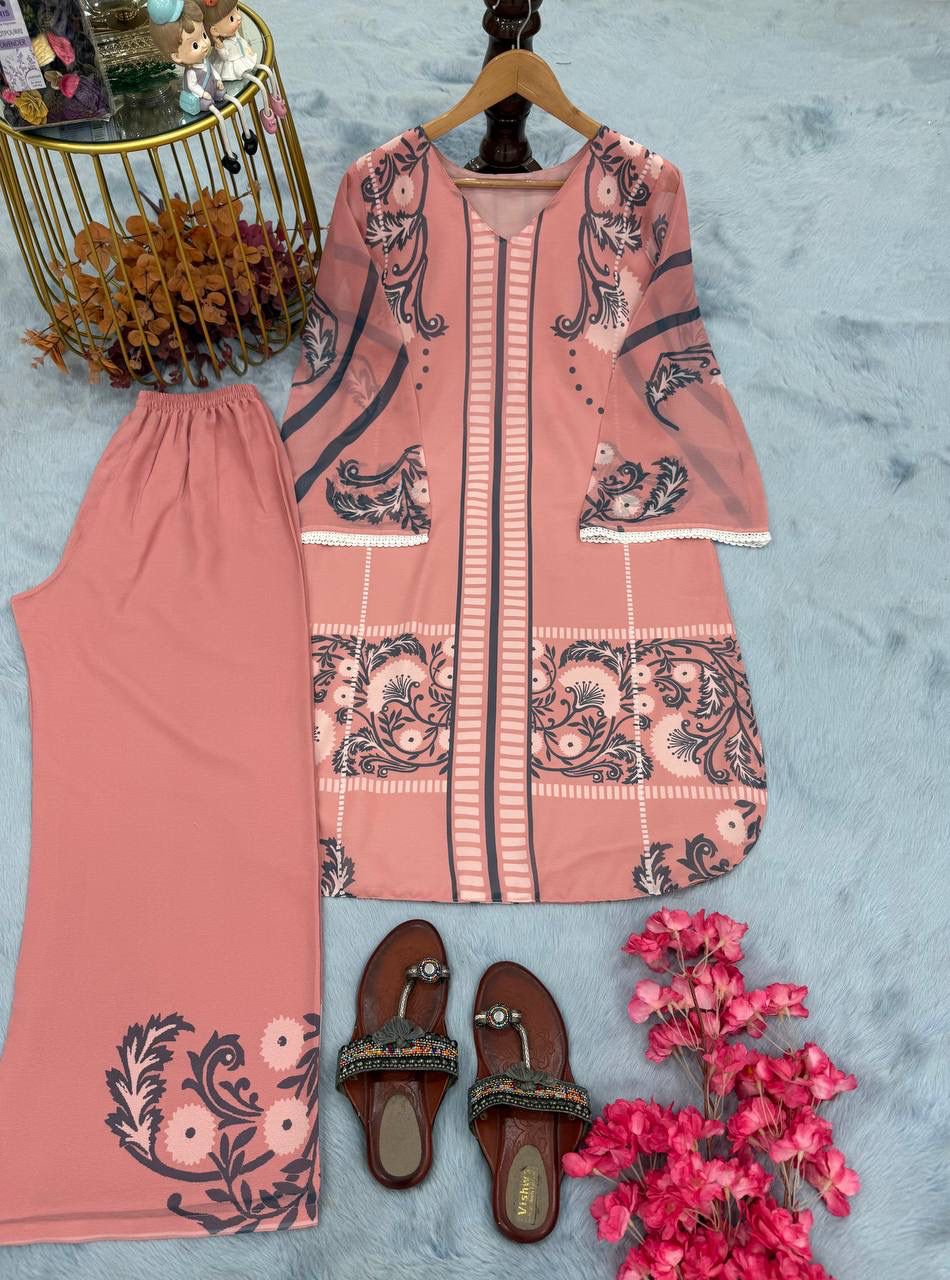 Palazzo Fabric : Heavy Foux Georgette With Digital Print With Elastic Palazzo Inner : Micro Cotton Palazzo Length : 39-40 Inc(Fully Stitched)