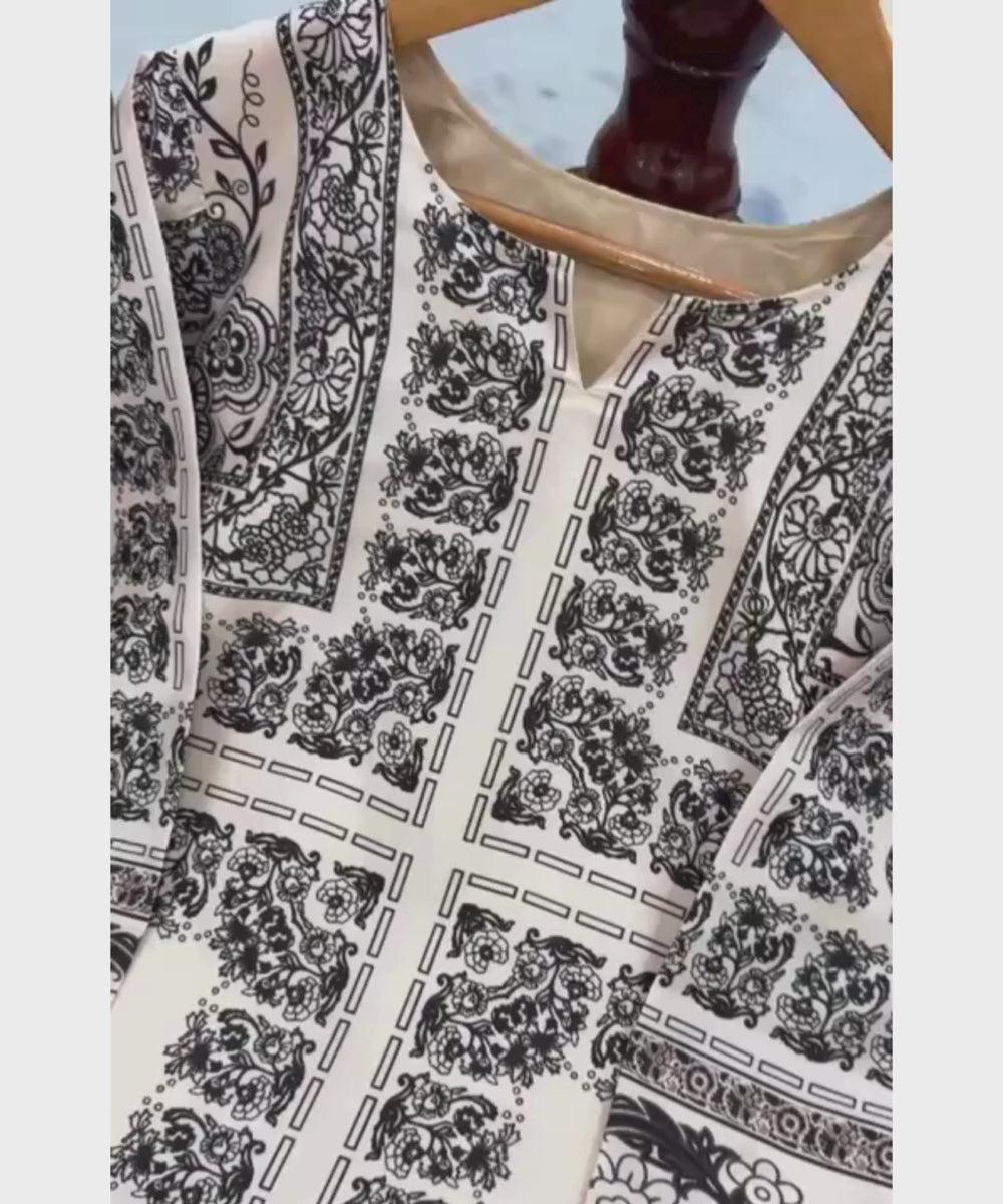 Top Fabric : Pure Natural Crepe With Digital Print With Sleeves Top Length : 35-36 Inch